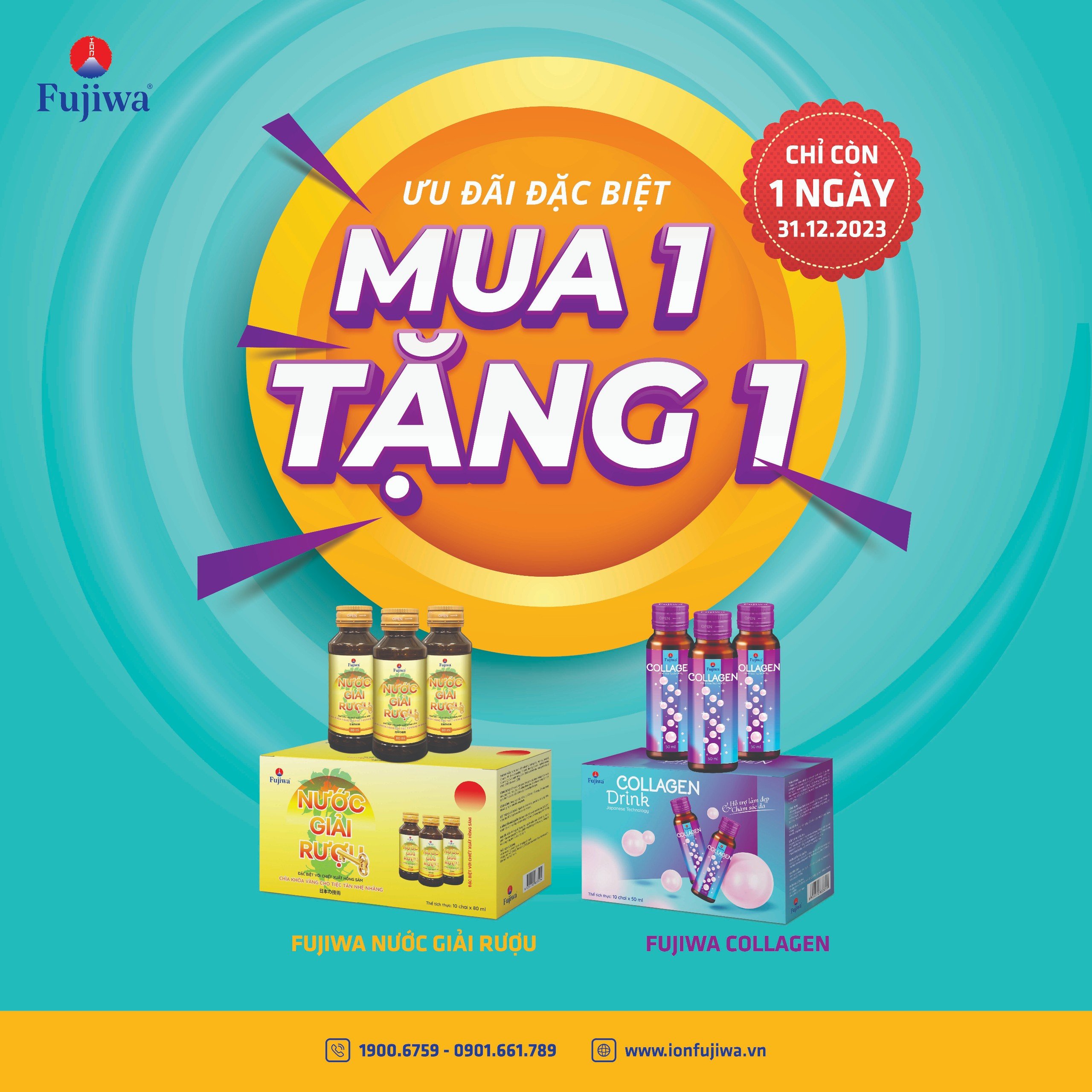 ⚡️Chương trình khuyến mãi “MUA 1 TẶNG 1” các dòng sản phẩm Fujiwa Collagen và Fujiwa Nước Giải Rượu đang nóng hơn bao giờ hết vì chỉ còn duy nhất 1 ngày cuối cùng để săn deal - thời hạn 31.12.2023.