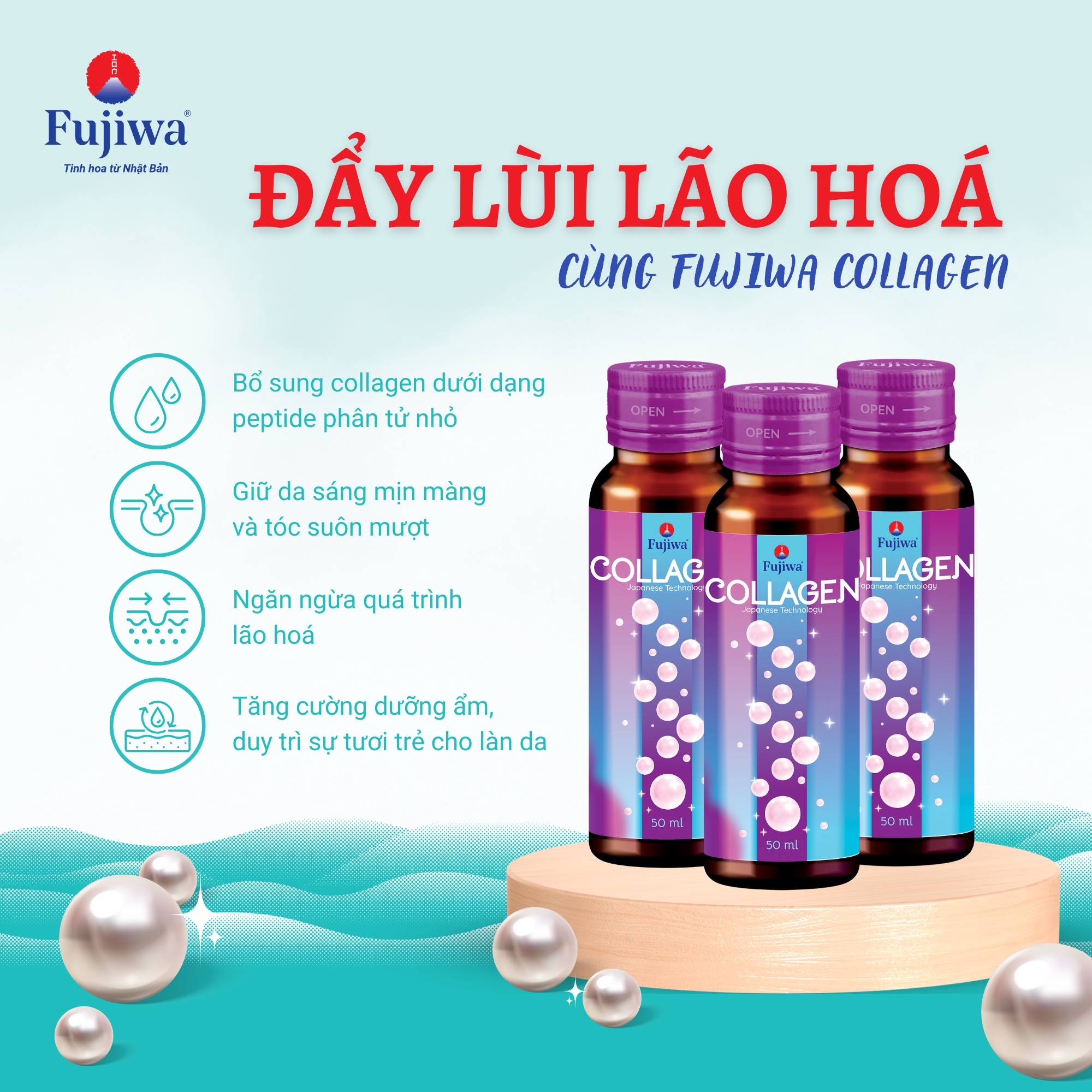 ĐẨY LÙI LÃO HÓA VỚI NƯỚC UỐNG ĐẸP DA FUJIWA COLLAGEN