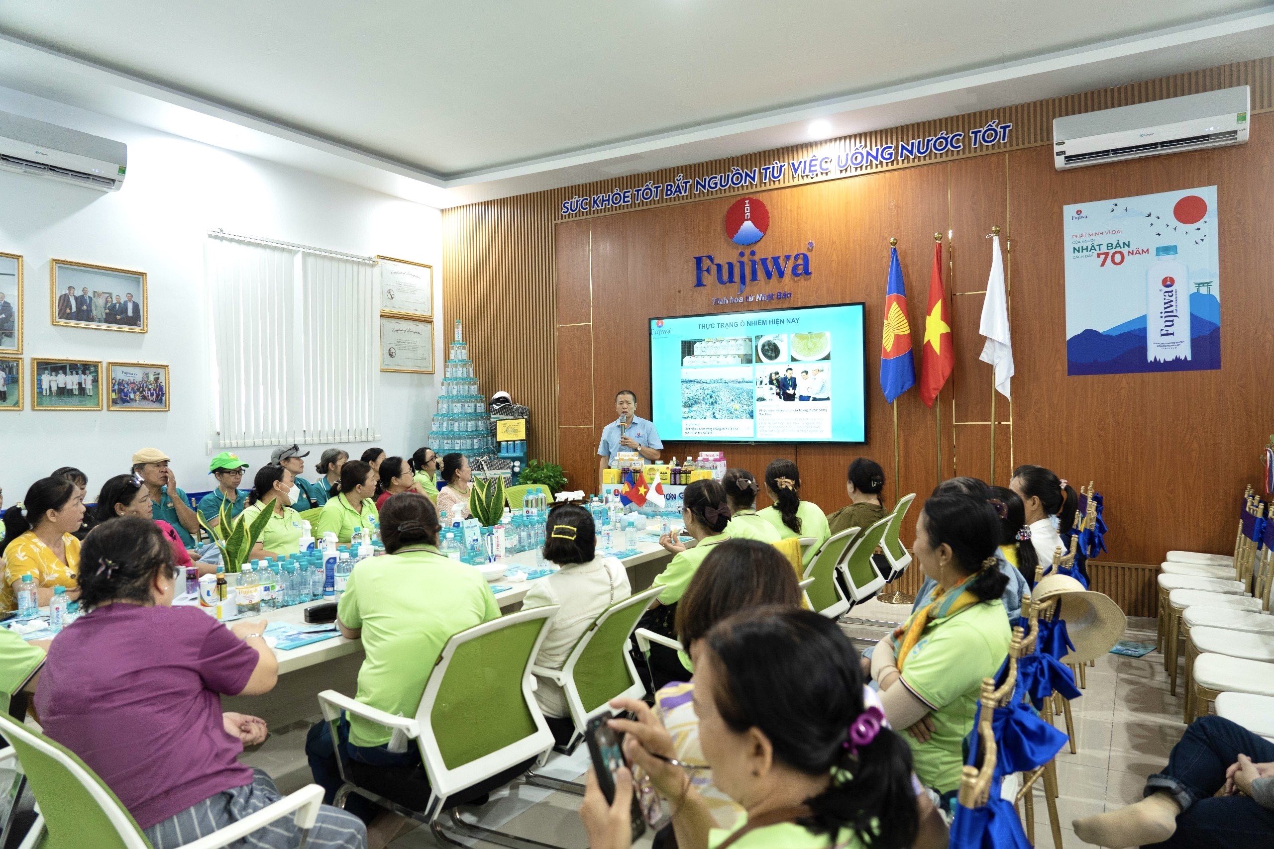 💧Trong khuôn khổ chuyến tham quan, đoàn tham quan phường Hiệp Bình Chánh - TP. Thủ Đức còn được lắng nghe nhiều chia sẻ thiết thực về tầm quan trọng của nước I-on Kiềm đối với sức khỏe, cũng như được giải đáp thắc mắc xoay quanh các vấn đề về việc dung nạp nước vào cơ thể hằng ngày. Từ đó, thấu hiểu và tin tưởng lựa chọn Fujiwa để chăm sóc, bảo vệ sức khỏe toàn diện.
