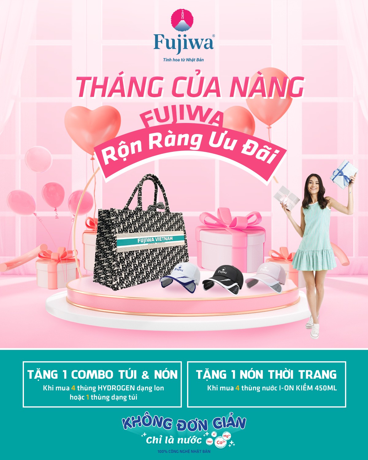 Còn gì tuyệt vời hơn trong tháng ý nghĩa này, cánh mày râu dành nhiều lời chúc chân thành cùng “món quà sức khoẻ" Fujiwa và combo túi, nón cực xịn tặng những người phụ nữ thân yêu của mình. Hành động này hứa hẹn sẽ khiến phái đẹp “đổ đứ đừ" và vỡ oà hạnh phúc đấy.